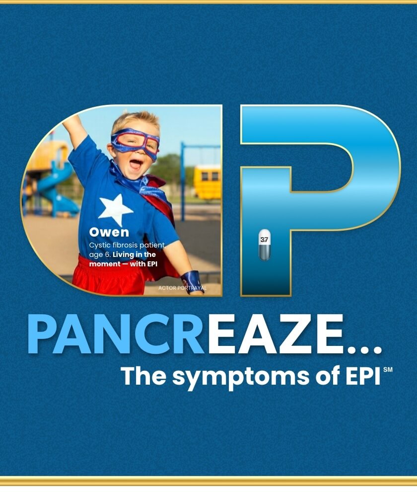 References: 1. PANCREAZE Full Prescribing Information. Campbell, CA: VIVUS LLC; 2024. 2. Cystic Fibrosis Foundation. (n.d.). Phthalates. Retrieved from https://www.cff.org/phthalates. 3. Fieker A, Philpott J, Armand M. Enzyme replacement therapy for pancreatic insufficiency: present and future. Clin Exp Gastroenterol. 2011;4:55-73. 4. Othman MO, Harb D, Barkin JA. Introduction and practical approach to exocrine pancreatic insufficiency for the practicing clinician. Int J Clin Pract. 2018;72:e13066. 5. Whitcomb, DC, Buchner, AM, Forsmark, CE. AGA Clinical Practice Update on the Epidemiology, Evaluation, and Management of Exocrine Pancreatic Insufficiency: Expert Review. Gastroenterology. 2023;165:1292–1301. 6. Fousekis FS, Theopistos VI, Katsanos KH, Christodoulou DK. Pancreatic Involvement in Inflammatory Bowel Disease: A Review. J Clin Med Res. 2018;10(10):743-751. 7. Dominguez-Muñoz JE, et al. European PEI Multidisciplinary Group. European guidelines for the diagnosis and treatment of pancreatic exocrine insufficiency: UEG, EPC, EDS, ESPEN, ESPGHAN, ESDO, and ESPCG evidence-based recommendations. United European Gastroenterol J. 2025 Feb;13(1):125-172. 8. Singh VK, Haupt ME, Geller DE, Hall JA, Quintana Diez PM. Less common etiologies of exocrine pancreatic insufficiency. World J Gastroenterol. 2017 Oct 21;23(39):7059-7076. 9. Radlinger B, Ramoser, G and Kaser S. Exocrine Pancreatic Insufficiency in Type 1 and Type 2 Diabetes. Current Diabetes Reports. 2020;20:18. 10. Martin TCS, Scourfield A, Rockwood N, et al. Pancreatic insufficiency in patients with HIV infection: role of didanosine questioned. HIV Medicine (2013),14,161-166. 11. Price DA, Schmid ML, Ong ELC, et al. Pancreatic exocrine insufficiency in HIV-positive patients. HIV Medicine (2005),6,33–36. 12. Vujasinovic M, Valente R, Thorell A, et al. Pancreatic Exocrine Insufficiency after Bariatric Surgery. Nutrients. 2017 Nov 13;9(11):1241. 13. Uribarri-Gonzalez L, Nieto-García L, Martis-Sueiro A, et al. Exocrine pancreatic function and dynamic of digestion after restrictive and malabsorptive bariatric surgery: a prospective, cross-sectional, and comparative study. Surg Obes Relat Dis. 2021 Oct;17(10):1766-1772. 14. Struyvenberg MR, Martin CR, Freedman SD. Practical guide to exocrine pancreatic insufficiency – Breaking the myths. BMC Med. 2017; 15(1): 29. 15. Trapnell BC, Strausbaugh SD, Woo MS, et al. Efficacy and safety of PANCREAZE for treatment of exocrine pancreatic insufficiency due to cystic fibrosis. J Cyst Fibros. 2011;10(5):350-356. 16. The National Pancreas Foundation (n.d.). Exocrine Pancreatic Insufficiency (EPI). Retrieved from https://pancreasfoundation.org/patient-information/ailments-pancreas/exocrine-pancreatic-insufficiency-epi/ 17. CREON® Full Prescribing Information. Chicago, IL: AbbVie, Inc; 2024. 18. PERTZYE® Full Prescribing Information. Bethlehem, PA: Digestive Care, Inc; 2024. 19. VIOKACE™ Full Prescribing Information. Bridgewater, NJ: Aimmune Therapeutics, Inc; 2024. 20. ZENPEP® Full Prescribing Information. Bridgewater, NJ: Aimmune Therapeutics, Inc; 2025. 21. Brennan GT, Saif MW. Pancreatic Enzyme Replacement Therapy: A Concise Review. JOP. 2019;20(5):121-125. 22. Barkin JA, Harb D, Kort J, Barkin J. Real-World Patient Experience With Pancreatic Enzyme Replacement Therapy in the Treatment of Exocrine Pancreatic Insufficiency. Pancreas. 2024 Jan 1;53(1). 23. Johns Hopkins Cystic Fibrosis Center. (n.d.). Effects of CF. Retrieved from https://hopkinscf.org/knowledge/effects-of-cf/ 24. Cystic Fibrosis Foundation. Cystic Fibrosis Foundation evidence-based guidelines for management of infants with cystic fibrosis. J Pediatr. 2009 Dec;155(6 Suppl):S73-93.